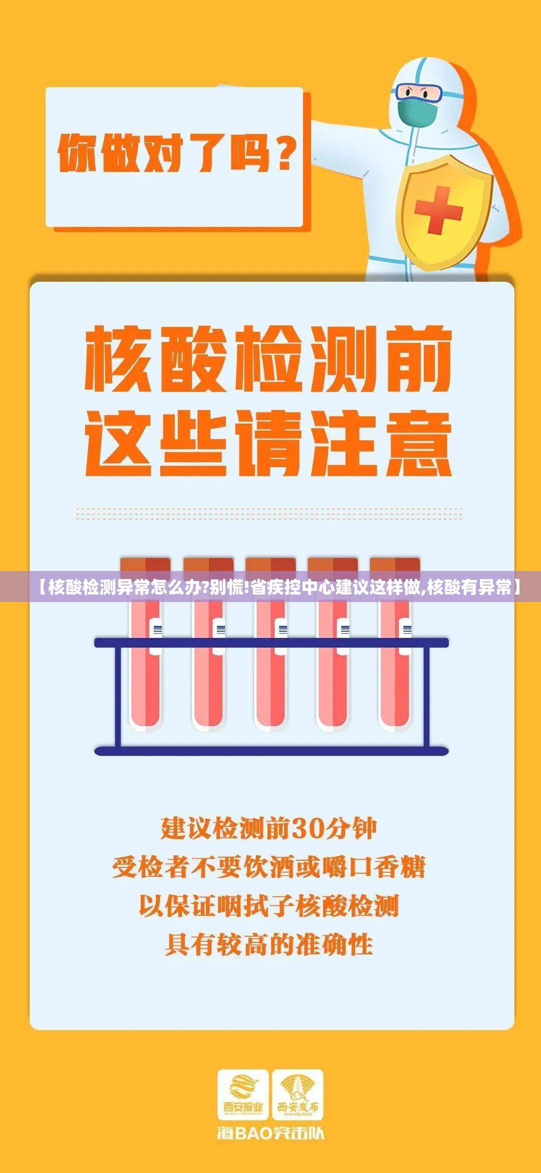 希望本篇文章《【核酸检测异常怎么办?别慌!省疾控中心建议这样做,核酸有异常】》能对你有所帮助!